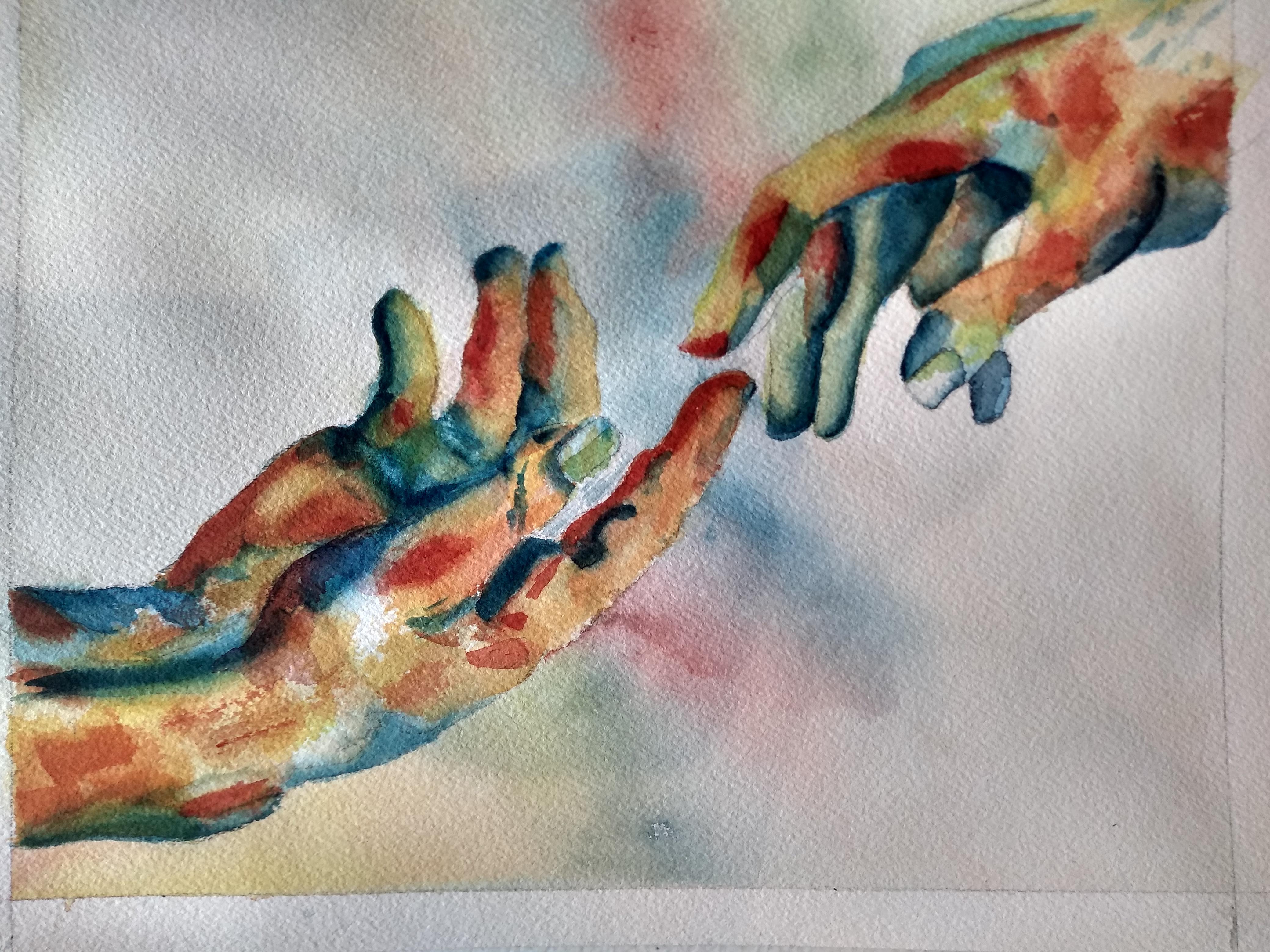 made up the rest. I underpainted with Brusho, then used several flesh tone